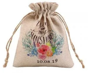 Item SBBAG79 * Sublimation Fauz Burlap Drawstring Bag. Designed for cosmetics, toiletries, travel bag carry all. Size 6.6″x8.3″