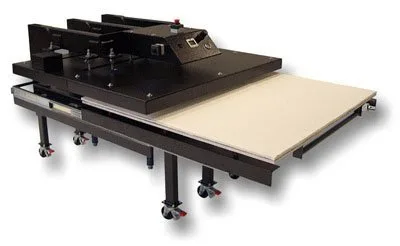 The 931 TRITON answers the demand for a more stable, solid work base along with the capability of pressing transfers in an oversized large-area environment. Typical applications include heat transfer printing onto fabrics such as banners & garments, thicker materials such as carpets & mats, rigid goods like tiles & ceramics, as well as woods, sheet metal, plastics, polyester coated synthetics and a vast range of other substrates. Typical processes used are sublimation printing, hot splits, foiling, embossing, laminating, hot-stamping, heat sealing and other applications requiring a massive size heat transfer press.
